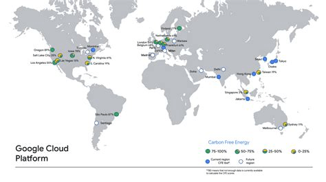 Google Cloud’s regions show varying levels of carbon-free energy usage, with significant differences between top and bottom performers: